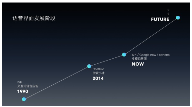 第二个阶段就是后期各大公司都出现了自己的语音助手,例如微软的cortana,谷歌的Google OK和苹果的Siri。这些语音助手集成了视觉和语音信息的app,可以同时使用语音和屏幕交互,是一种多模态的交互设计。发展到这个阶段就有了多轮对话的可能性,但是如何对用户的语音进行理解就成为了语音交互的技术瓶颈了。